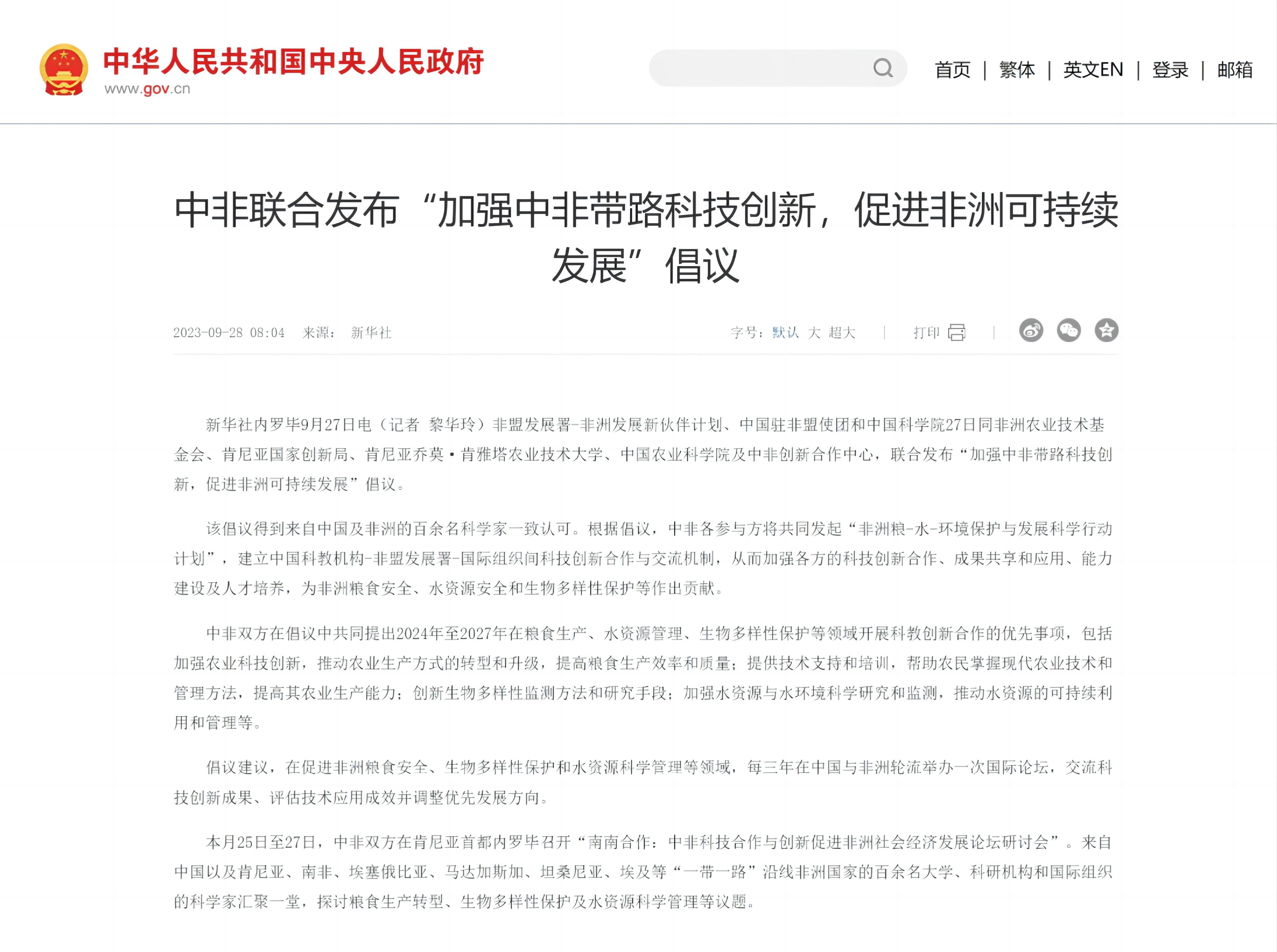 11月20日,由中国科学院中-非联合研究中心(以下简称“中-非中心”)牵头编制的《非洲粮食-水资源-环境保护与发展科学行动计划(2026—2030)》(以下简称《行动计划》)在湖北武汉举办的“2025中非创新合作与发展论坛”上正式发布。