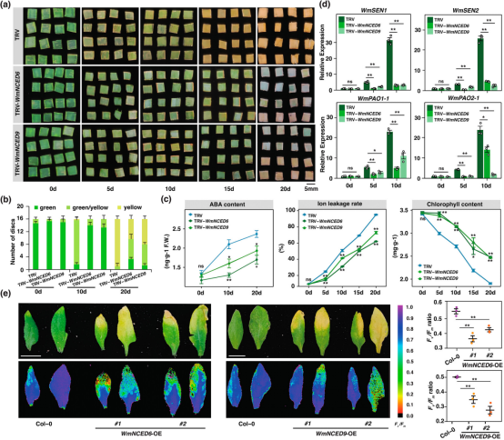 图2 WmNCED6与WmNCED9通过促进内源ABA合成加速叶片衰老