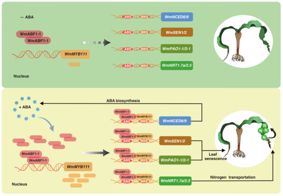 (3) ABA信号通路核心元件WmABF1-1调控百岁兰叶片衰老的分子机制