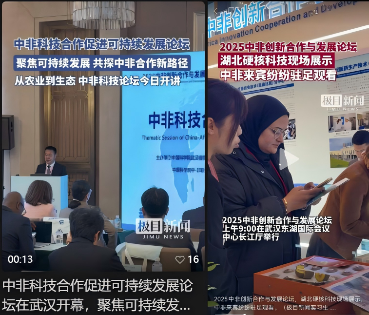 楚天都市报旗下视频号“极目育见”发挥新媒体传播优势,对论坛内容进行了可视化提炼与传播,通过浓缩研讨精彩瞬间、展示成果展实况、聚焦行动计划发布环节等方式,生动传递了中非合作的丰硕成果与现场热度。