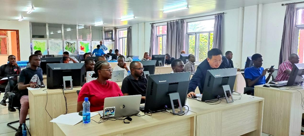 本期课程为“遥感数据处理与专题地图制作技术”,内容紧密围绕学校本学科的教学内容,注重青年学生的学习兴趣,进行了精心设计。近30名来自JKUAT的学生和青年科研人员参加了10学时的学习。通过理论讲解与上机实践相结合的方式,学员们基本掌握了遥感数据预处理、影像分类与解译、专题地图制作等知识与实际操作技能,取得了较好的教学成效。课程由中国科学院空天信息创新研究院(空天院)魏显虎副研究员、邓飚副研究员、JKUAT大学Thomas Ngigi副教授联合主讲,George Watene博士协助教学。