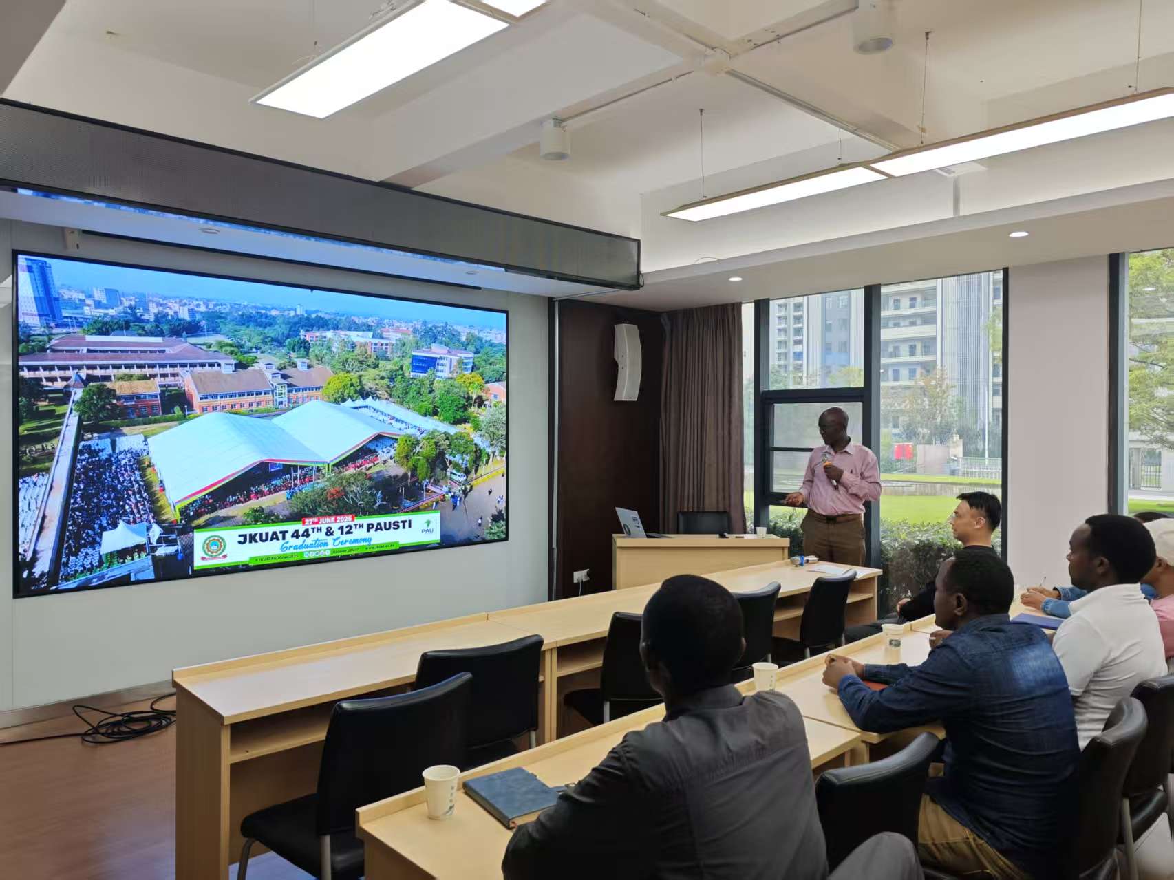 10月17日下午,肯尼亚乔莫·肯雅塔农业与技术大学(JKUAT)约翰·加滕亚(John Gathenya)教授为武汉植物园三十余名非洲留学生做了一场精彩的学术报告。
