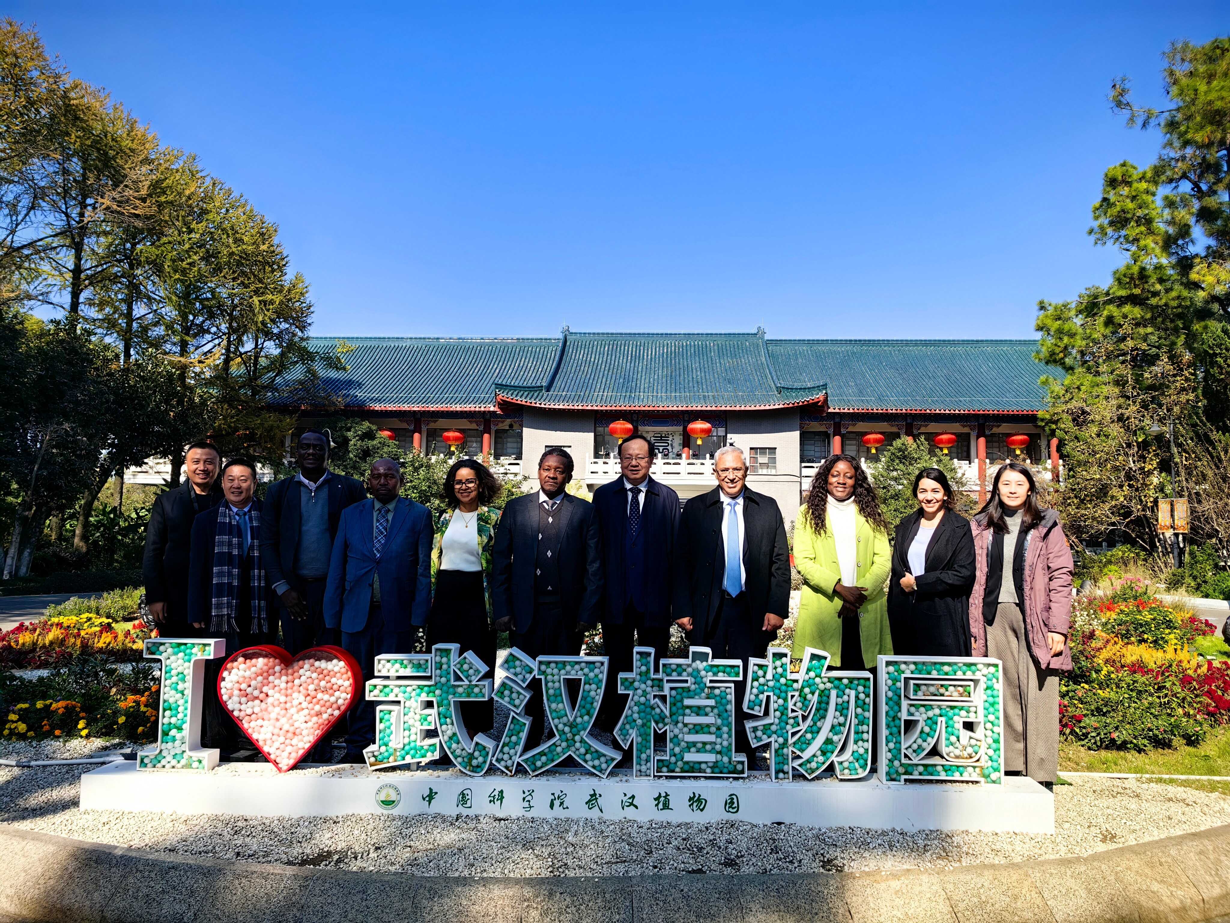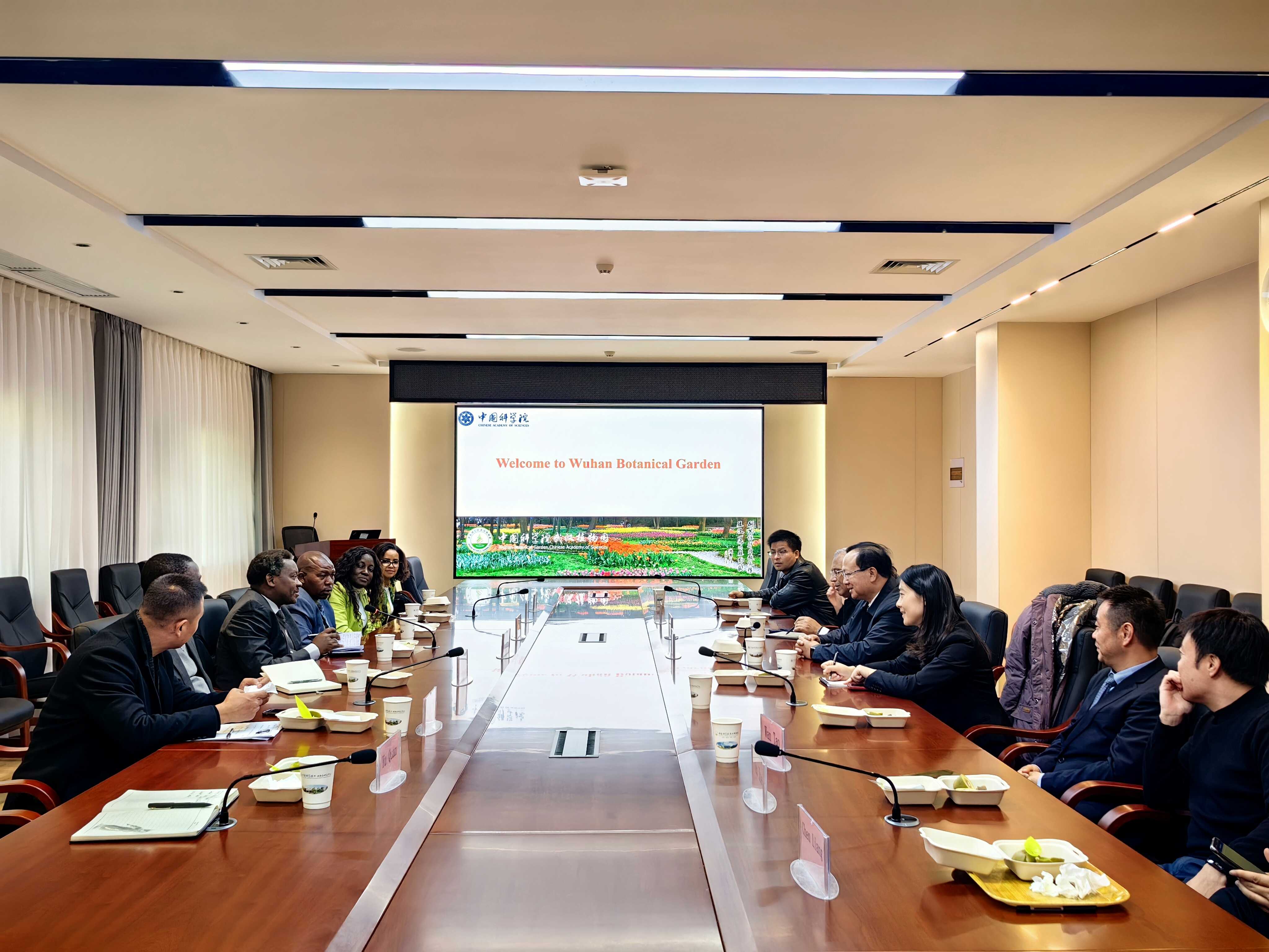 11月19日,在“2025中非创新合作与发展论坛”在武汉召开期间,非盟教育、科技与创新委员加斯帕尔·巴尼扬金博纳教授与埃及科学研究部科技创新基金委(STDF)主席瓦拉·谢塔教授应中国科学院中-非联合研究中心(以下简称“中-非中心”)邀请,访问中国科学院武汉植物园,就深化中非科教领域务实合作展开深入交流。