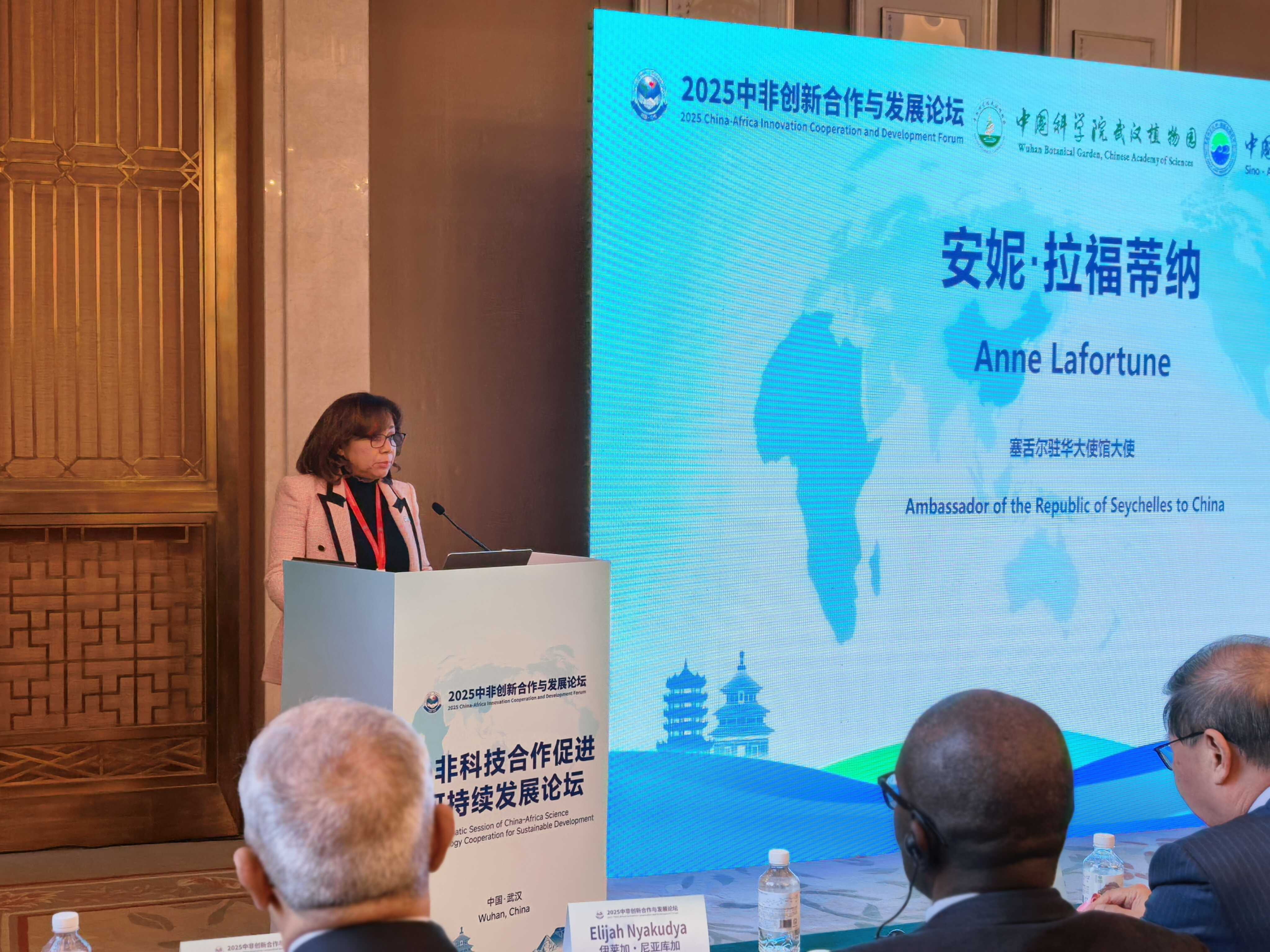 安妮·拉福蒂纳大使致辞中提到,中非科技知识与技术共享潜力巨大,塞舌尔将坚定致力于中非合作,共建基于相互尊重、聚焦可持续发展的高水平中非命运共同体。