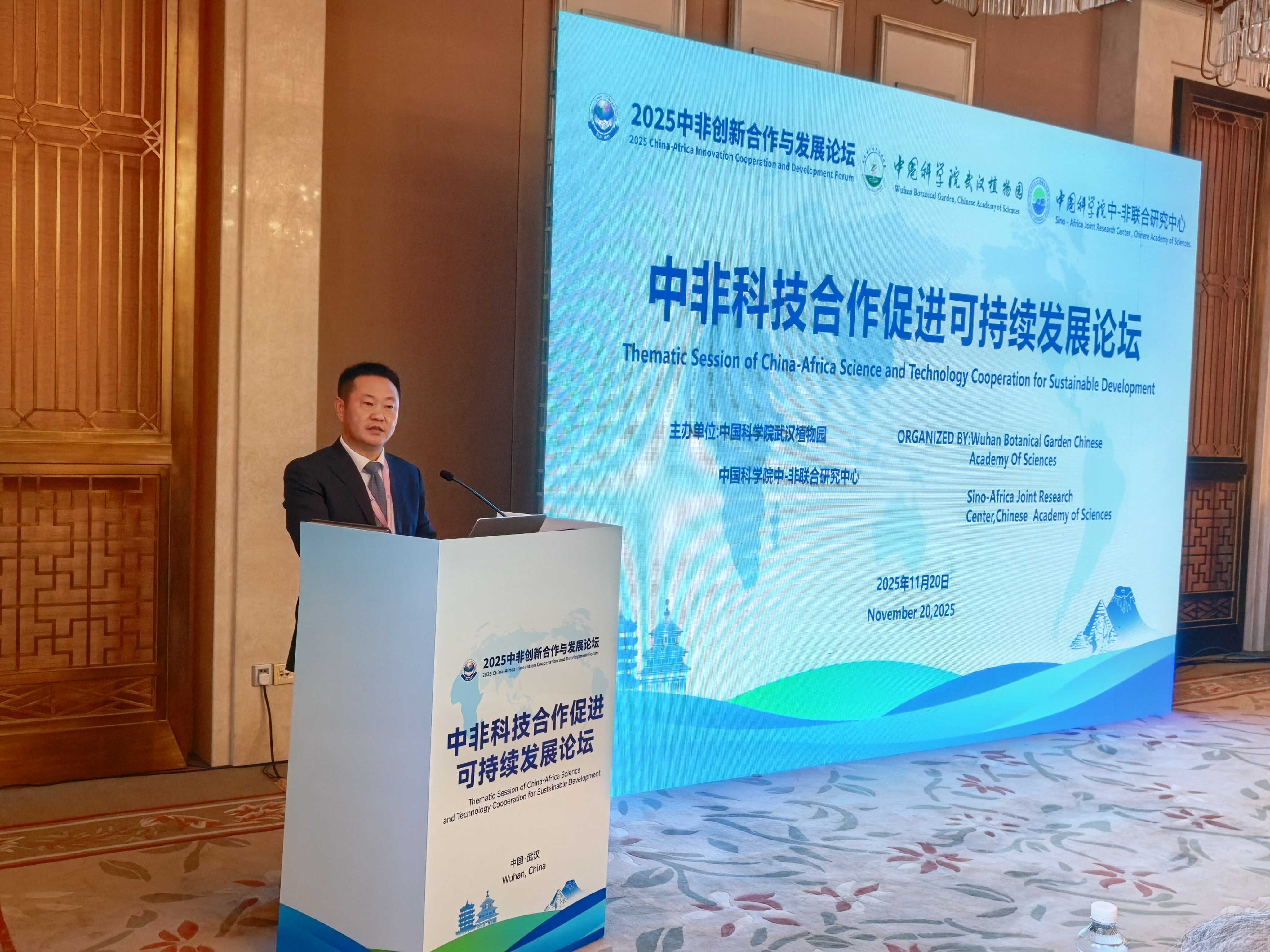 11月20日,由科技部和湖北省人民政府联合主办的“2025中非创新合作与发展论坛”在武汉隆重举行。作为重要组成部分,“中非科技合作促进可持续发展论坛”聚焦科技合作中研究基金功能、国际科技政策、粮食安全实践、生物多样性与环境保护等核心议题,为中非科技合作搭建了高规格的对话平台。本论坛由中国科学院武汉植物园/中国科学院中-非联合研究中心(以下简称“中-非中心”)主办。