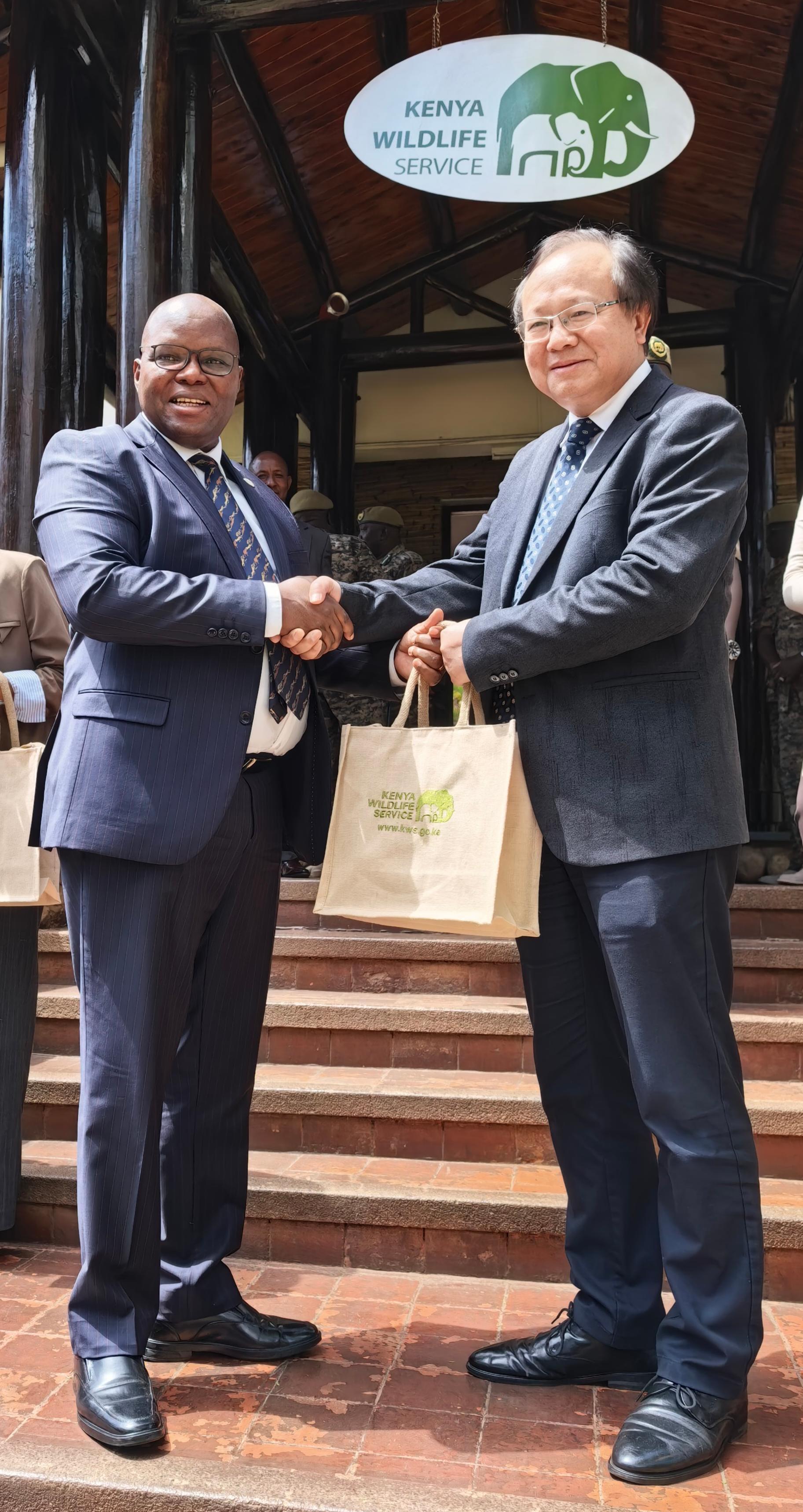 王青锋主任与KWS 局长Erustus Kanga博士(左)