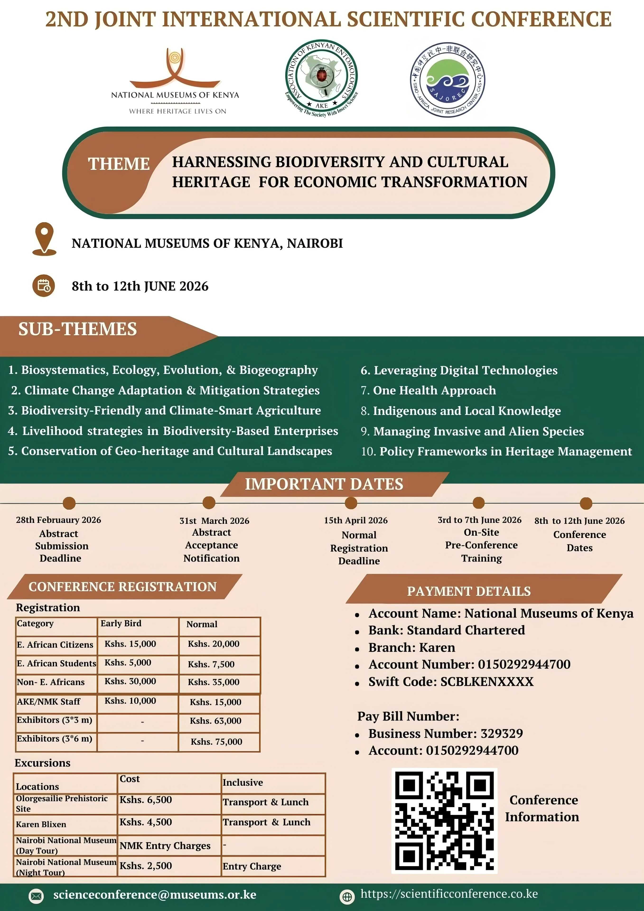 Build on a strong foundation of interdisciplinary collaboration, this conference brings together scientists, conservationists, policymakers, educators, community leaders, and innovators. It is envisioned to bridge the gap between research, practice, and policy; the joint NMK & AKE&SAJOREC biennial conference is becoming a leading forum for discussing the role of biodiversity in sustainable development.